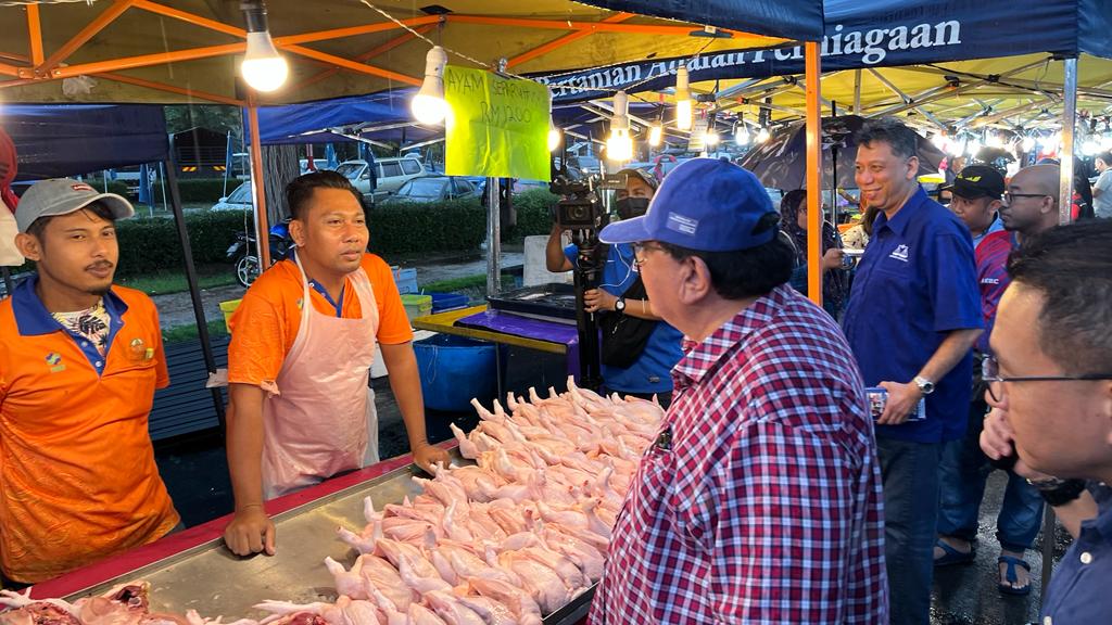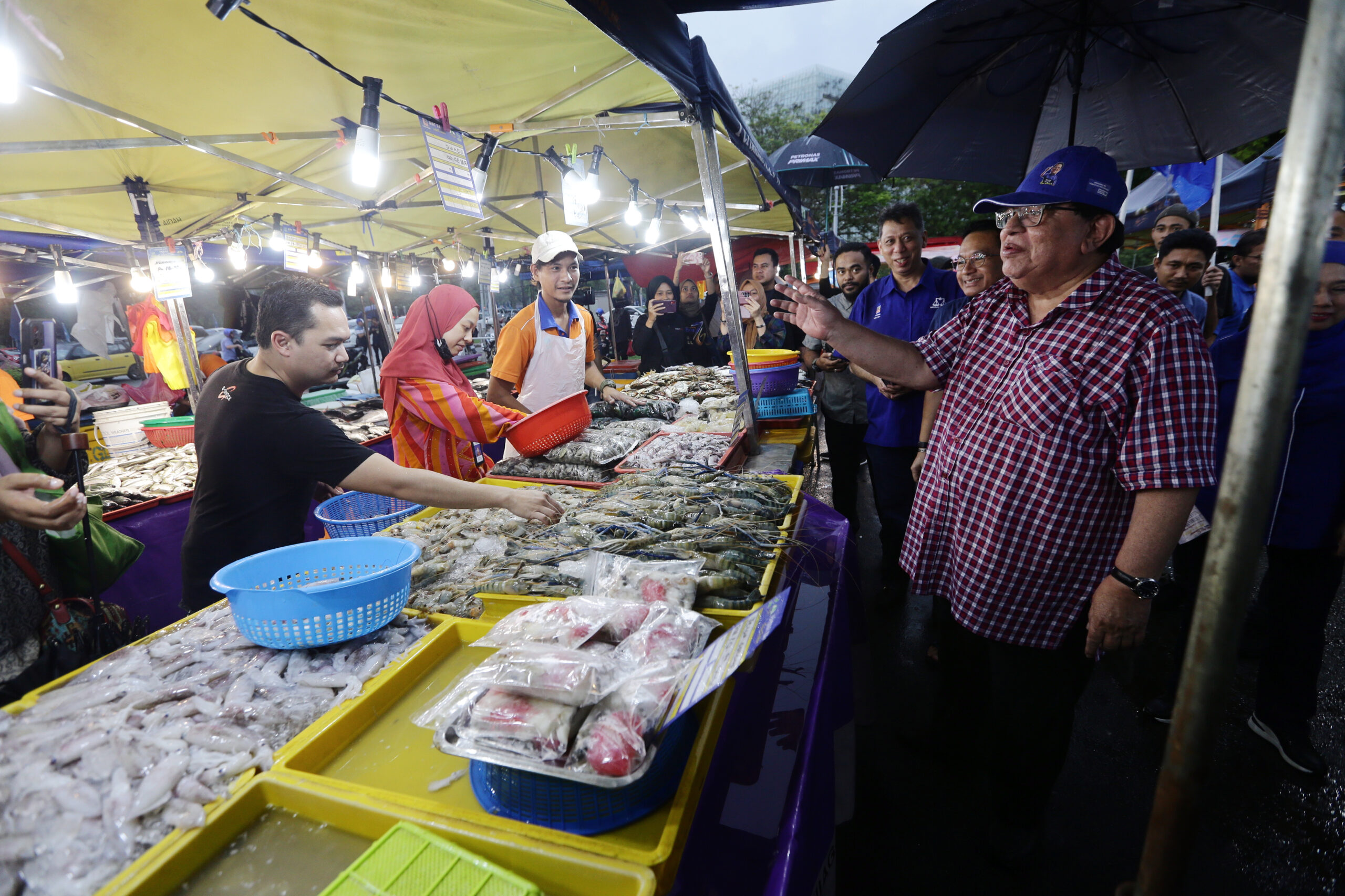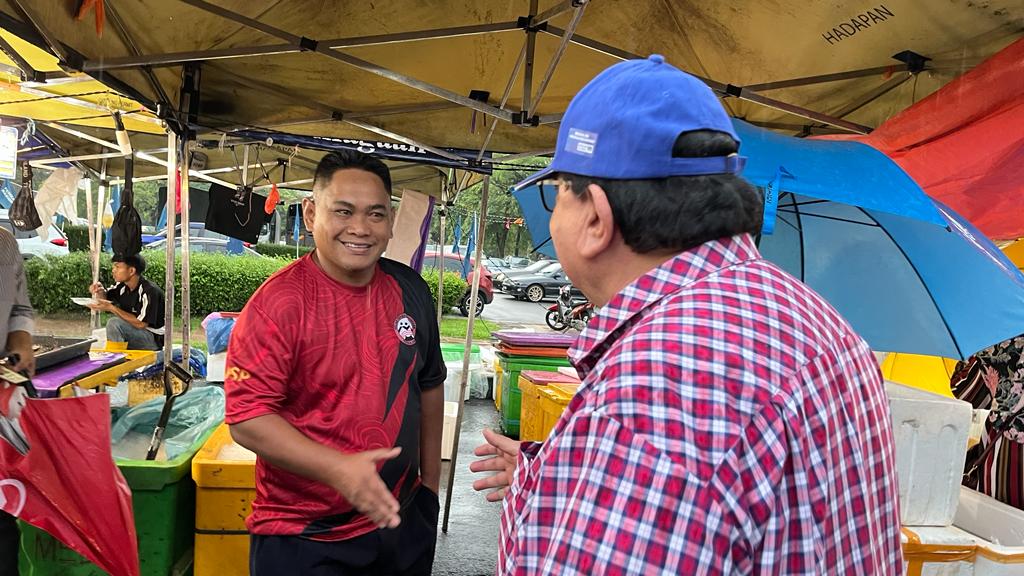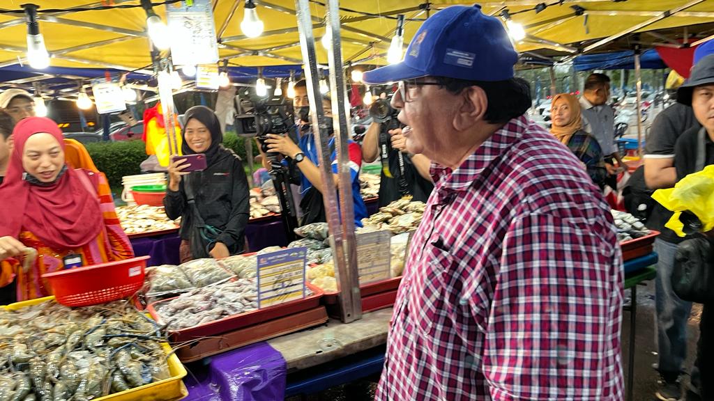 PUTRAJAYA 08 NOVEMBER 2022. Calon Barisan Nasional P125 Putrajaya, Datuk Seri Tengku Adnan Tengku Mansor berbual bersama peniaga ketika mengadakan kempen ‘walkabout’ di Pasar Tani Presint 2 Putrajaya. NSTP/MOHD FADLI HAMZAH