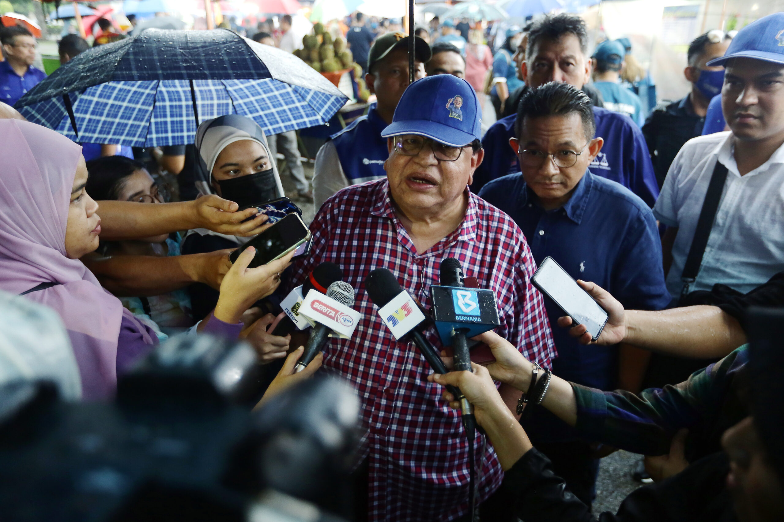 PUTRAJAYA 08 NOVEMBER 2022. Calon Parlimen P125 Putrajaya, Datuk Seri Tengku Adnan Tengku Mansor ketika sidang media selepas mengadakan ‘walkabout’ di Pasar Tani Presint 2 Putrajaya. NSTP/MOHD FADLI HAMZAH